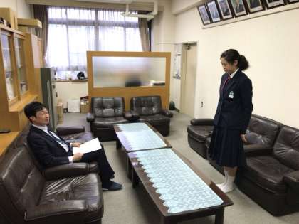 昼休みに引き続き、放課後も面接練習が行われています。緊張しながらも一生懸命答えています。