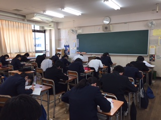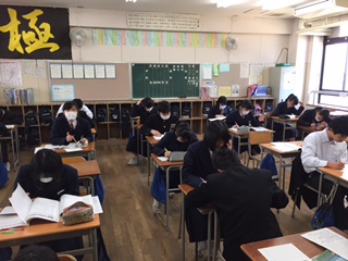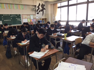 さて、来週の金曜日はいよいよ私立高校の入試です。早い人では月曜日から入試に臨む人もいます。この土日は勝負です。またくれぐれも体調には気をつけてください。いつも金田先生がおっしゃっているように、「受験会場にたどりつかないことには始まりません。」万全の体調で、万全の準備をして、当日に臨めるようにしてください。