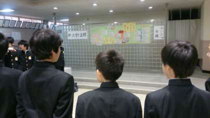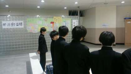そして、集合場所前の壁面には、部活動目標のあいさつについて掲示されています。勝利することは大きな目標ですが、東中生として、部活動を通じて学ぶ大切なことも、しっかり身につけていきましょう!