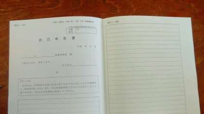 3年生になれば書かなければならない自己申告書です。わかるところ、わからないところ、悩むところ、色々と困ることはあるでしょうが、1つ1つを丁寧に書いていました。今から少しずつ練習です。来年の今頃にはきっといいものが書けているでしょう。