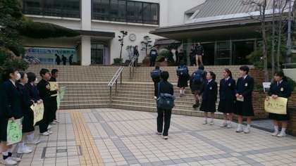 生徒会のみならず、各部の部長の皆さんも部活動部長会で決まった、あいさつ運動の取り組みを実行してくれています。