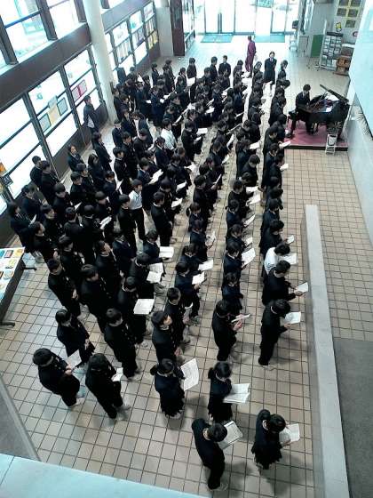卒業式実行委員の動きや声掛けとともに、それに応えようと懸命に歌う3年生の様子を見ていると、卒業式が中学校生活の最後を飾るに相応しいセレモニーになりそうです。