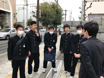 昨日と同じく校門前で集合して出発した生徒たちの様子です。緊張するでしょうが、自分の力をしっかりと発揮してきてください。
