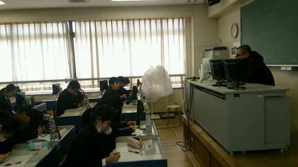 放課後、LL教室では、C-netのアーネスト先生が講師となり、入試に向けたリスニングレッスンが行われています。