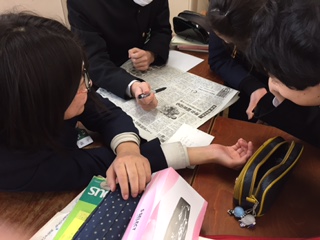 3年生では、現在「『文殊の知恵』の時代」という論説文に取り組んでいます。昨日の授業では、文章から発展し、新聞記事から「価値観の相違によって問題が生じる例」を探し、班でまとめるという学習を行ないました。