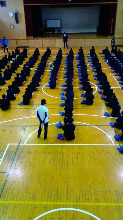 3年生に向けて歌を送りますが、何よりもきっちりとした会にするために、きびきびとした動きを徹底します。立ち位置の確認、声だし、静かに整列すること。3年生に気持ちよく思いを送るために練習をしています。