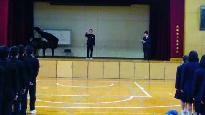歌の練習をしています。最後の練習です。気持ちをいれてしっかりと声を出しましょう。