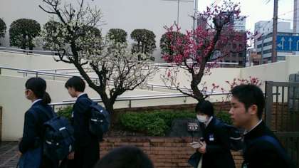 正門脇の紅梅・白梅の花が満開になりました!登校してくる東中生を、いつも見守ってくれています。
