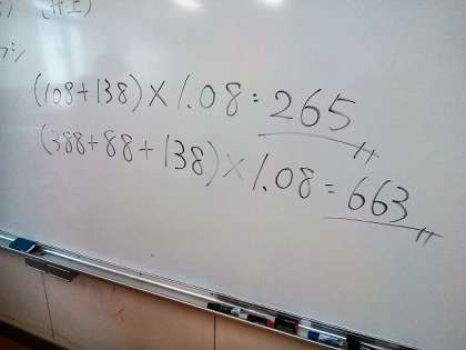 最後に1.08をかけることを忘れないように注意しながら、一生懸命電卓を使って計算していました。