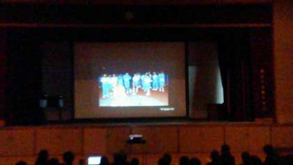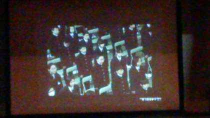 先生方からの合唱のプレゼントの後は、福永先生の力作!3年間の思い出を振り返る、スライドショーです。3年生は、懐かしみながら、笑いあり、感動ありの楽しい時間となりました。