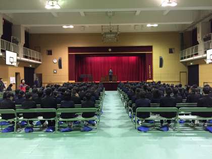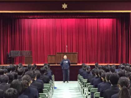 身だしなみの確認を終え、学年主任の山田先生から、卒業式に臨む姿勢としてのお話がありました。