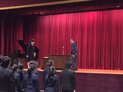 続いて、送別の歌(蛍の光)、PTA、同窓会からの記念品の贈呈式の練習になります。