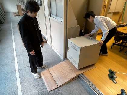 パソコン準備室のドアの部分には大きな段差があり、これまで保管庫の出し入れが困難でした。