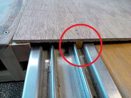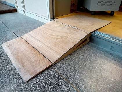 完成したスロープは、出し入れの際のずれを防ぐために、ドアのレールにバー(3枚目の画像の赤丸部分)を入れて固定しています。