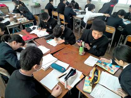 PDCAサイクルの手法を取り入れながら、班で意見を出し合い学びを深めていました。