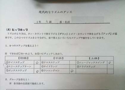 1年生は、先日行われたヒップホップダンス発表会のまとめをしています。