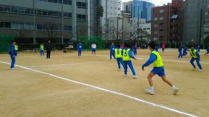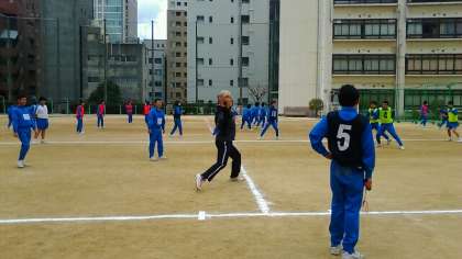 5、6時限目は球技大会になりますので、最後の練習となります。担任の客本先生も一緒にドッジボールをプレーしています。