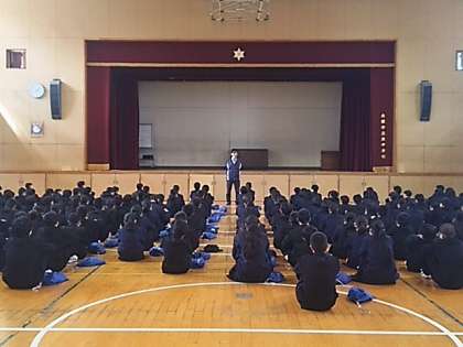 いよいよ三学期も残り2週間。春休みを控えての諸注意、そして2年生に進級するにあたり、一度気持ちを引き締めるために学年集会を行いました。