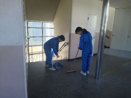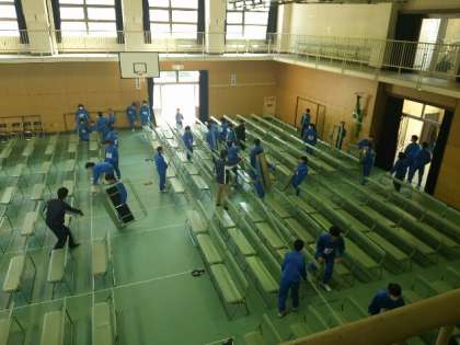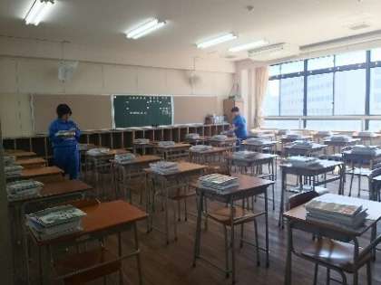 会場の準備、清掃活動、教科書セッティングがどんどん進んでいきます。