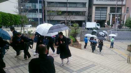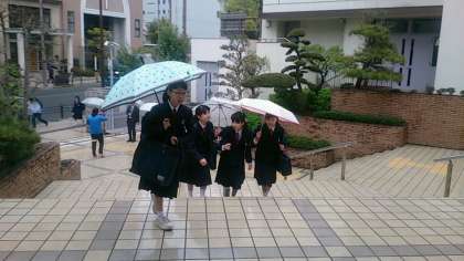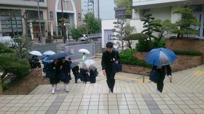 今朝は昨日までの春らしい清々しい天気から一変し、雨風の強い寒い朝となりました。そんな中、東中生が元気に登校してきました!