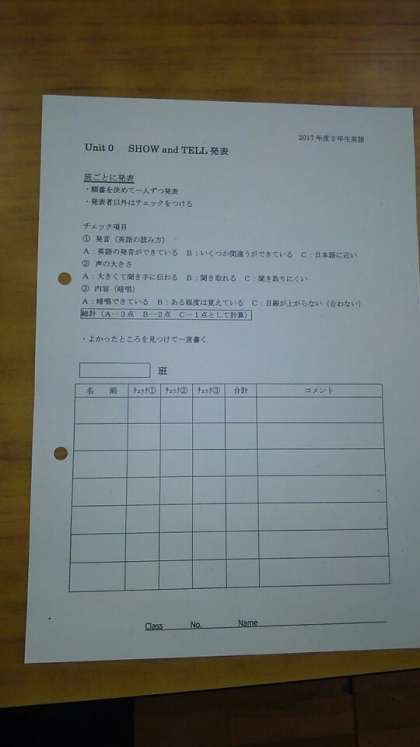 今日の5限目の英語の授業で、春休みや最近の出来事について、具体的なものを見せて、show and tell を行いました。