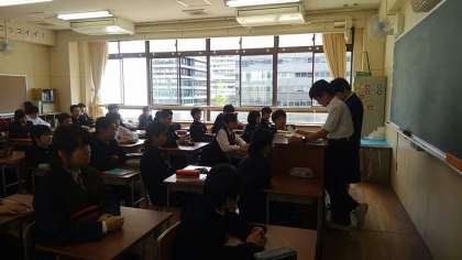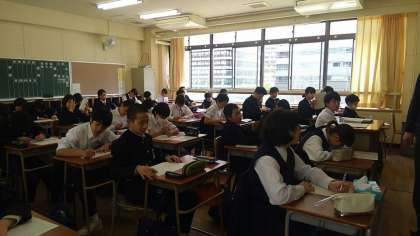 どのクラスも作文に取り組んでいます。作文に先立って、昨日の常置委員会の報告をしている学級もありました。
