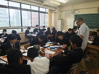 アーネスト先生の授業です。今日は自己紹介か、春休みの出来事について発表出来るように文章を考えて各班で発表しました。何人かは代表で発表してくれました。みんなよく出来ました!