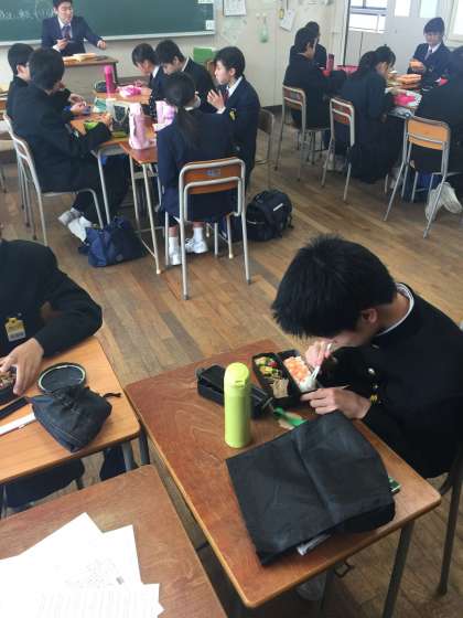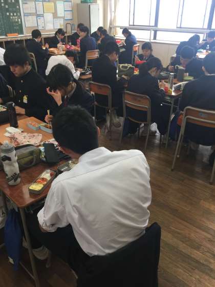 ご家庭で作っていただいたお弁当やデリバリー給食をいただいています。黙々と食べるクラスもあれば楽しく会話しながら食べるクラスもあるようです。
