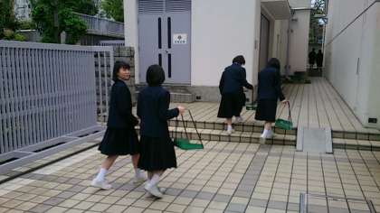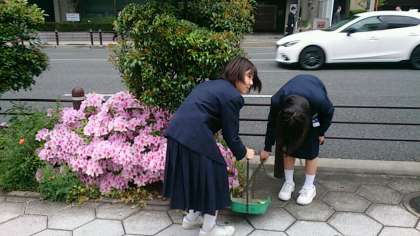 女子バスケットボール部の皆さんが、早朝より学校周辺の道路等のボランティア清掃に取り組んでいます。学校周辺をゴミのない美しい環境にする行動は、皆さん自身の心を美しくします。