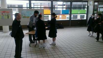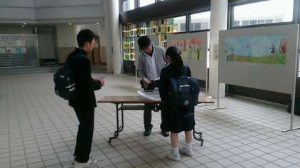 登校時、東中ホールで、学級写真の申し込み受付が行われています。東中生の皆さん、もう申し込みは済みましたか?!