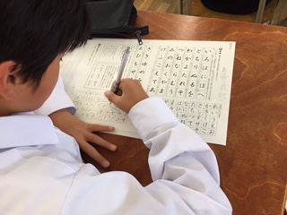 本日の6限目、1年生1組の国語は書写でした。硬筆を用いて、丁寧に字を書くことに勤しんでいました。