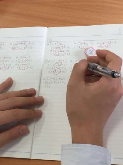こちらは数学の授業です。黙々と因数分解に取り組んでいます。