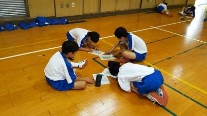 1年生の体育の授業では、東中のトレーニングに取り組みました。『トレーニング観点チェック表』をもとに、班でチェックしあいながら課題の解決に向けて活動を進めています。1年生も少しずつ東中生としての活動ができるようになってきました。これも日々取り組んでいる集団行動の成果ですね。