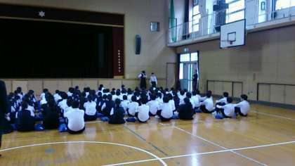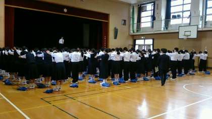 水曜日は1年生の学年集会の日です。集合・整列が完了しました。まもなく始まります。