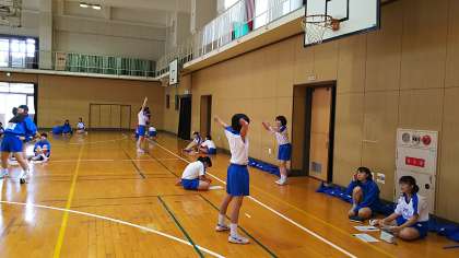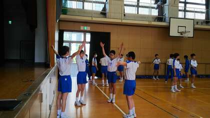 2年生の体育の授業は、『東中体操の観点チェック表』を活用して、班の仲間とチェックしあいながら、正確で美しい体操を目指して取り組んでいます。一つ一つのことが1年生の手本となるよう、がんばれ2年生!