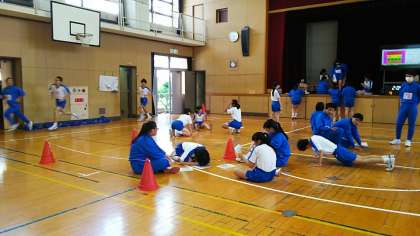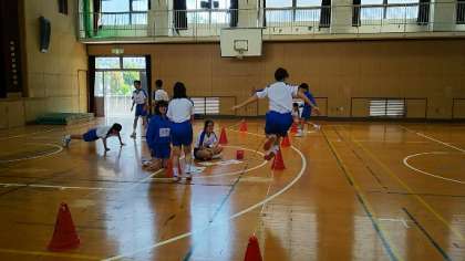 3年生の体育の授業では、体力テストに向けて体つくり運動を行いました。班の仲間と協力し6つの運動に明るく元気よく取り組んでいます。さすが最上級生!取り組む姿勢はバツグンです。