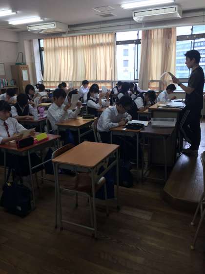 6時間目、3年生は平和学習に取り組んでいます。戦時中、特攻隊の隊員が家族に宛てた遺書を詠みといています。