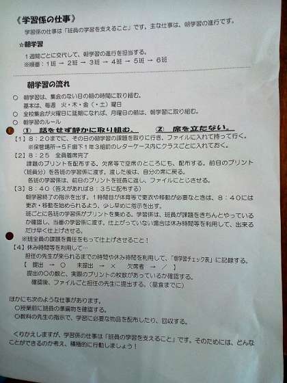 一人ひとりが自分の責任をしっかり果たすことでいい班が生まれます。