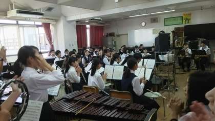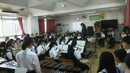 吹奏楽部の見学の様子です。なんと一年生は、今日が初めての合奏だそうです。見事な演奏を披露してくれました。