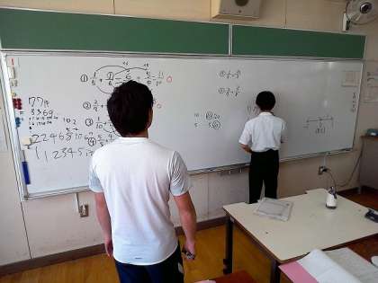 石垣先生と一緒に、問題を解く途中の様子を一生懸命ホワイトボードに書いていました。