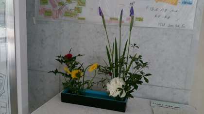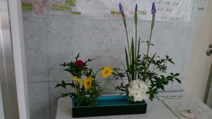 東中ホール玄関には、いつものように美しい花々が生けられています。
