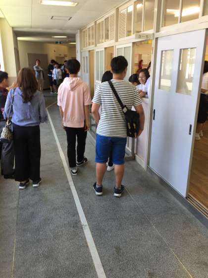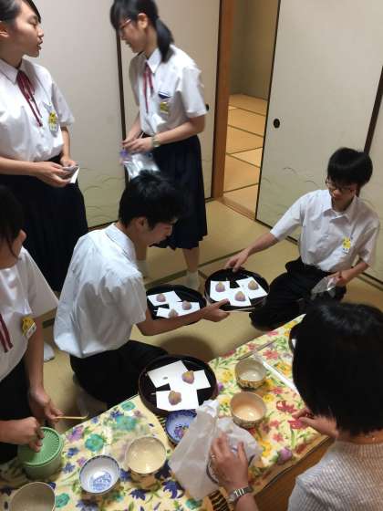 4時間目は3年生や茶道部のメンバーが様々に企画したレクレーションでおもてなしいたします。休み時間はバタバタと準備が行われています。