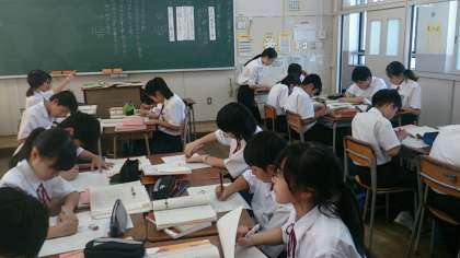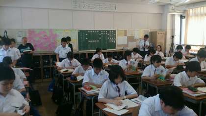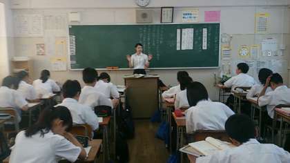 教育実習生の皆さんの研究授業が、今週から始まりした。今日は1年4組で、国語科で取り組まれています。