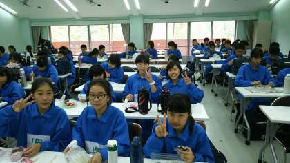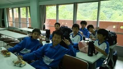 雨のため各部屋に別れて昼食です。ガス科学館の見学も充実していたため、すっかりおなかがすいたと賑やかにいただいています。