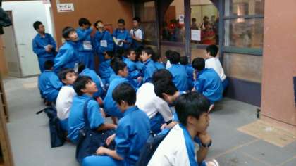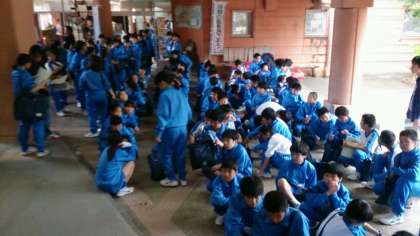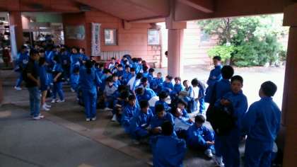 体育館でのレク活動が始まります。体育館が空くまで待機しています。5分前行動ができています!