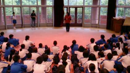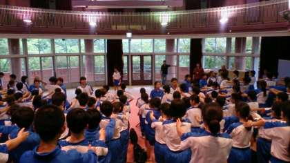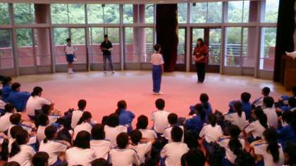 オリエンテーションホールで、入所式が始まりました。代表生徒のあいさつ、職員の方からのごあいさつと館内利用の説明をしていただきました。