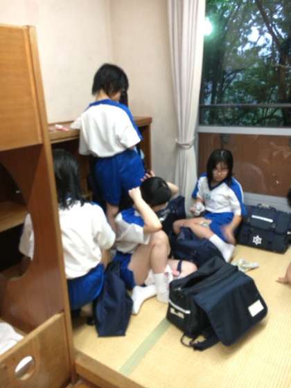 女子部屋の様子です。次の活動に備えて準備をしています。