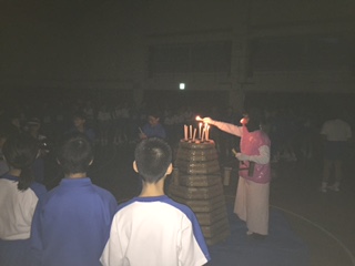 開会式の後、炎の儀式として32期生全員で校歌を歌いました!