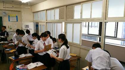 今日は2組でアーネスト先生との授業でした。最初は昨日の疲れが出ているのか声がなかなか出ませんでしたが、活動は元気よく楽しそうにできました。最後は全員が発表できました。