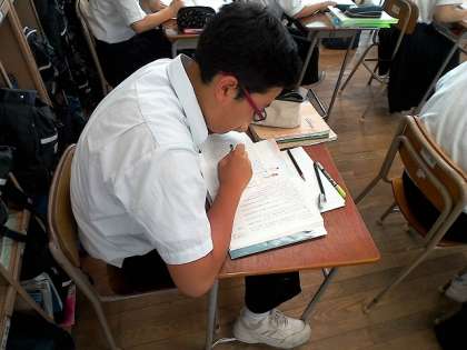 生徒たちは、グループ内で友達の作品を読みながら、熱心にコメントシートを書いていました。